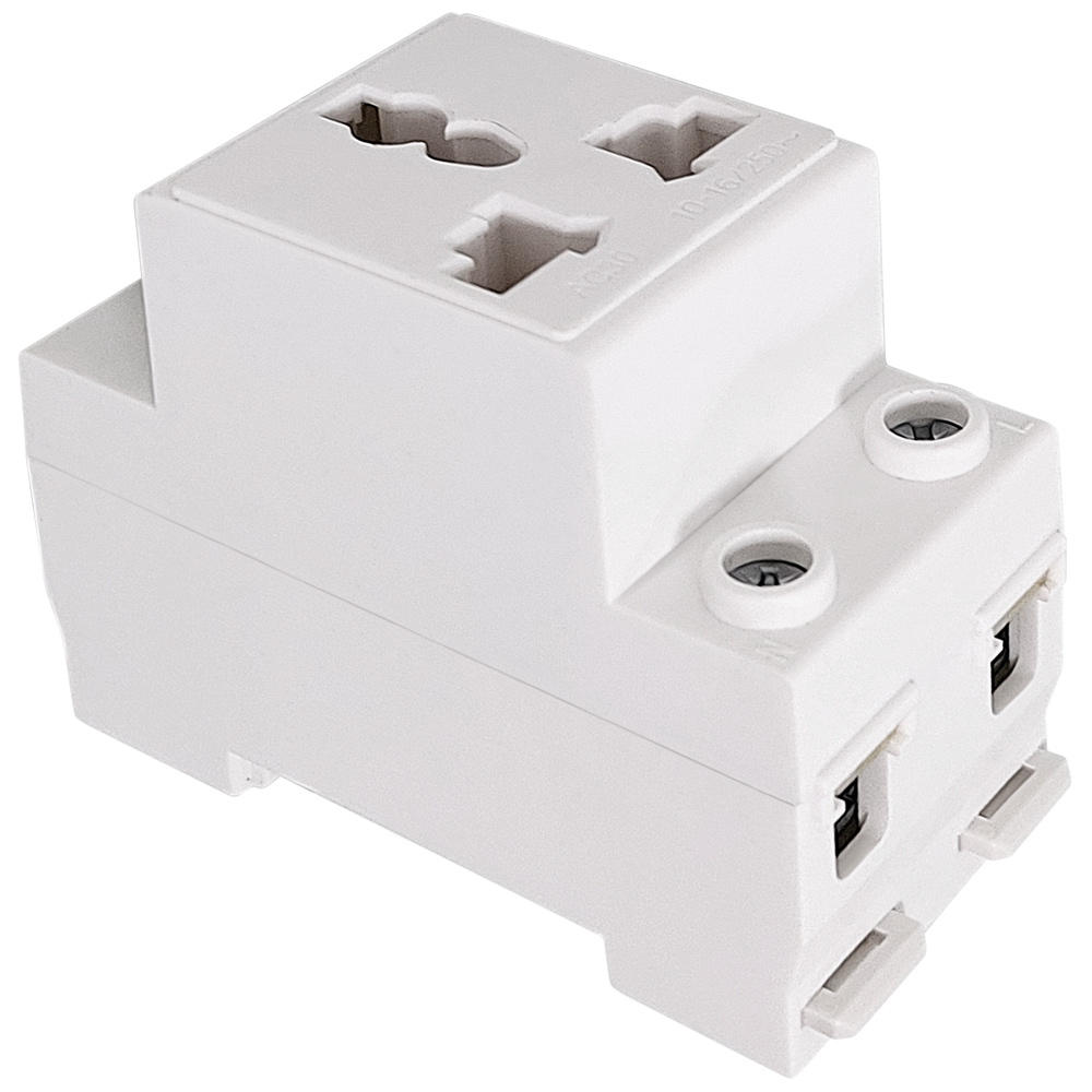 - Loại ổ cắm điện với thiết kế dạng module tiêu chuẩn để gắn thanh DIN 35mm.