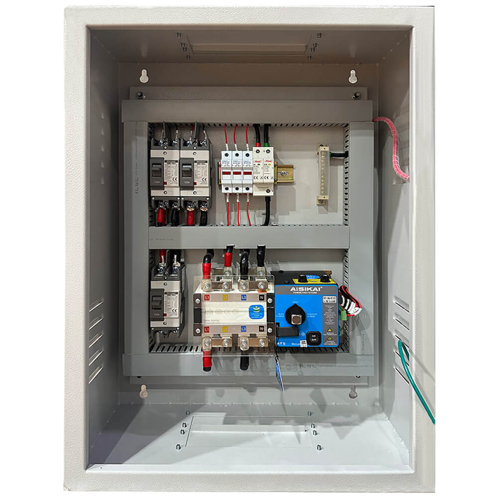 - Tủ ATS Solar Hybrid được thiết kế nhằm đảm bảo nguồn điện liên tục cho tải, kết hợp thông minh giữa điện lưới – điện mặt trời – pin lưu trữ. Hệ thống tự động ưu tiên nguồn tối ưu, giúp tiết kiệm điện năng và tăng độ tin cậy cho quá trình vận hành.